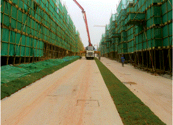 绿色施工是项目的建设亮点,消防系统安装采用永临结合的方式,施工安全通道及上下楼梯全部采用 LED 节能灯带照明,办公区还建立了雨水收集与回收利用系统。同时根据各施工阶段采用道路喷淋、雾炮、外脚手架喷淋系统,裸露地面用植被、薄膜覆盖等多种措施大大减少工地扬尘。